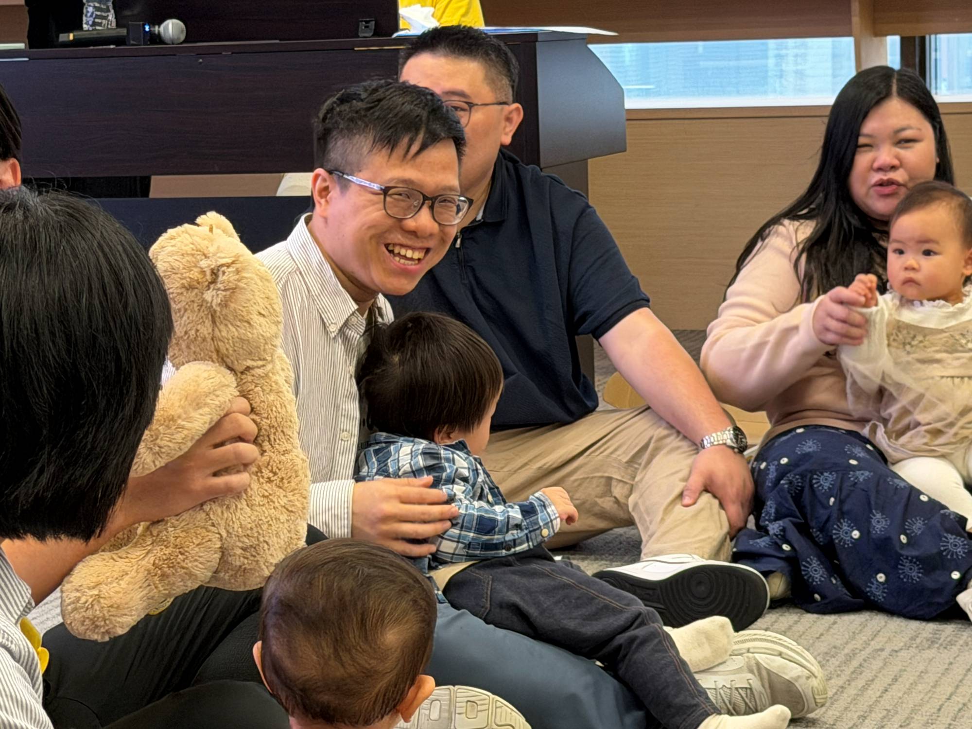 在課堂上的一片柔和樂聲中,家長抱着小朋友互相對望,隨着音樂輕輕擺動身體,營造親密的親子時光;家長和小朋友一起利用小樂器敲打出《小夜曲》及《Sakura》的節奏,增加親子默契;而年紀較大的小朋友在節拍聲中自由創作不同動作,引導家長一起互動,好玩又能發揮創意,成為好玩的音樂遊戲,大家一起唱唱歌,聽音樂,享受美妙的音樂親子新體驗。