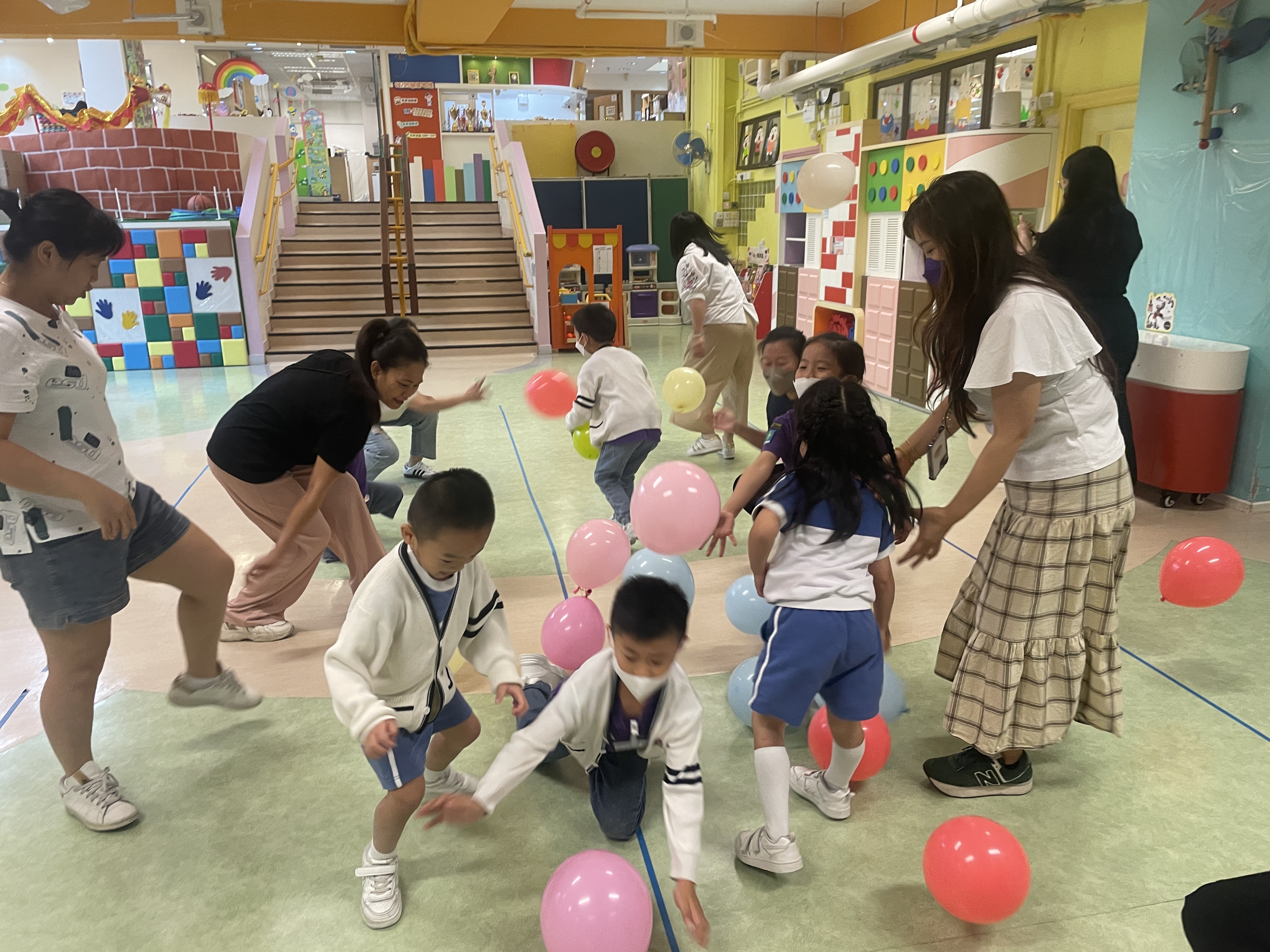 最后一节是亲子活动,目的是让家长和孩子欢度愉快的亲子时光,大家一起唱儿歌,玩不同的游戏,令小朋友及大人最兴奋的莫过于气球大战和亲手制作独一无二的虾饼笑脸环节,家长们亦写下对小朋友的赞赏,一起营造快乐家庭!